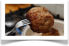 De Bal werd geserveerd in een bloedheet gietijzeren pannetje en was al in schijven verdeeld.